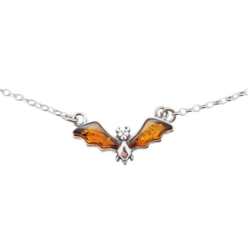 The Cognac amber used in this necklace is genuine Baltic amber, known for its deep connection to the earth and its ancient origins. Baltic amber is often associated with protection, healing, and transformation, carrying the energy of the sun and the earth. In many cultures, bats symbolize rebirth and intuition, as they are creatures of the night that navigate through darkness with ease. The sterling silver setting enhances the amber's spiritual properties, making this necklace a powerful talisman for embracing change, fostering inner strength, and connecting with your deeper instincts.