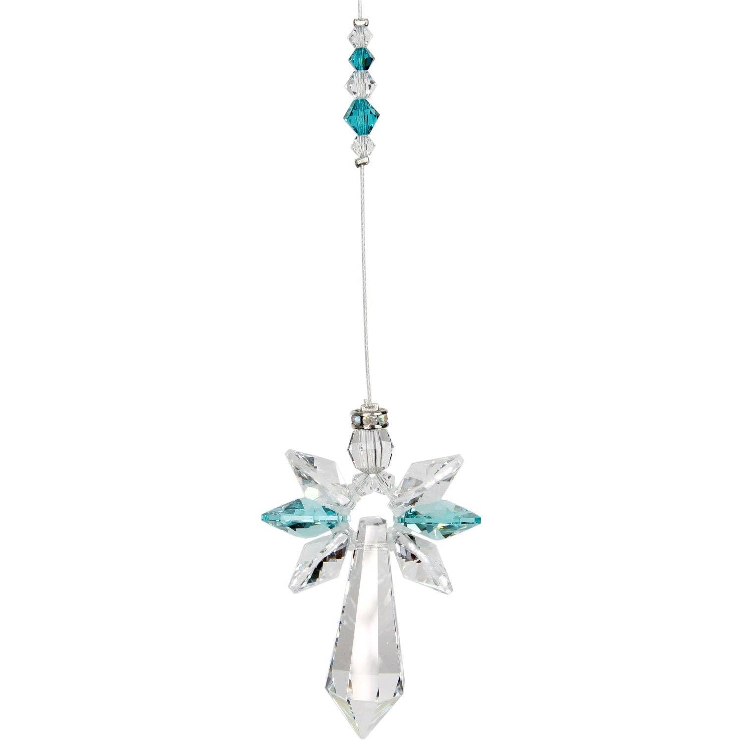 This large Guardian Angel features jewelry-quality blue zircon color crystals. The beautiful bright blue crystals reflect every color of the rainbow.