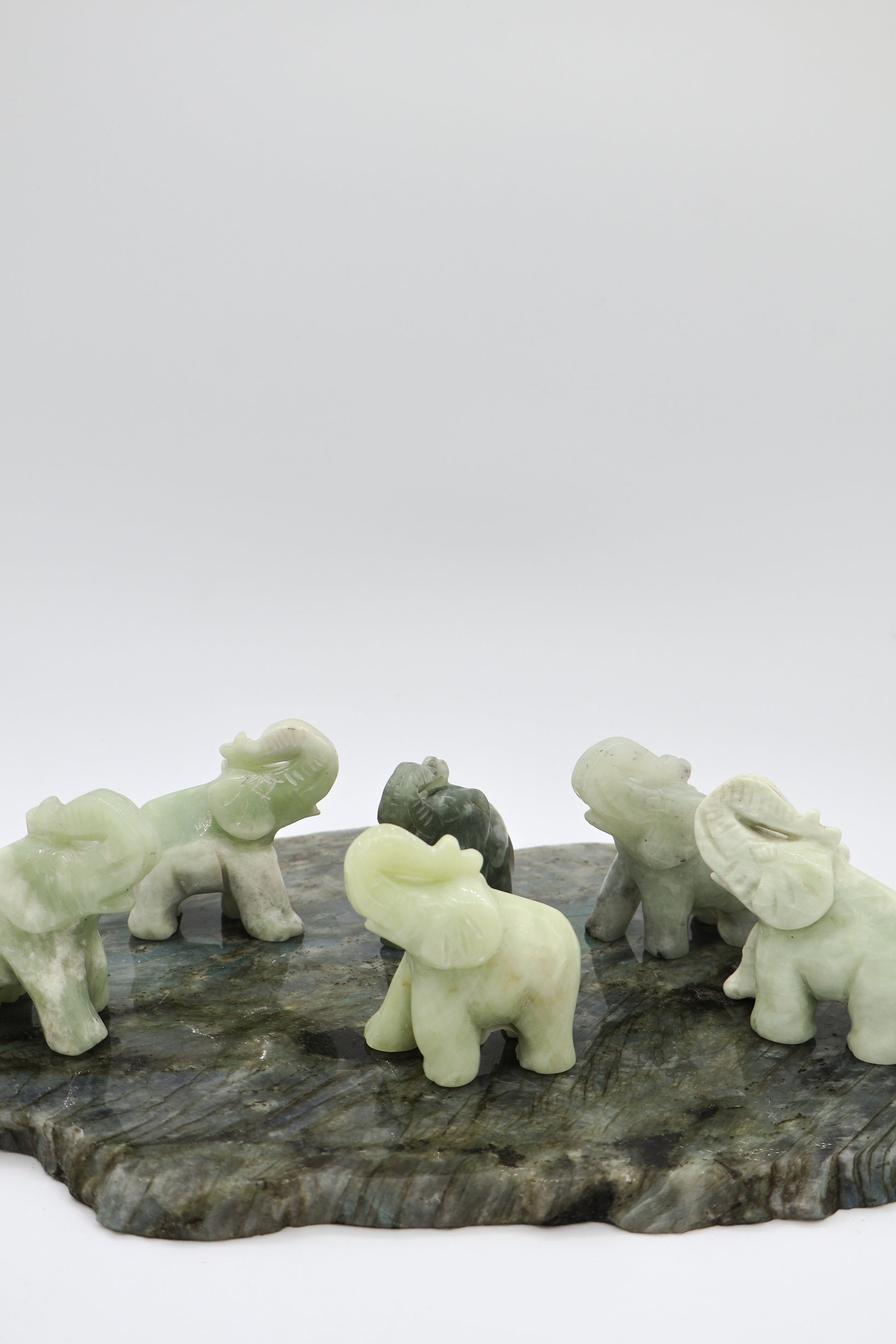 Each elephant is sold individually. Due to the natural variations in the jade, each piece features its own unique shade, making every carving one-of-a-kind.