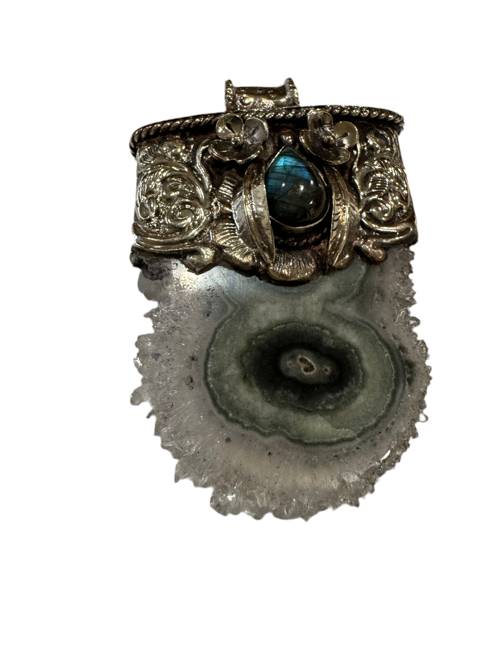 These large chunky gemstone pendants with intricately carved silver detailing make bold and elegant statement pieces. Each pendant features a unique, rare gemstone carefully selected for its distinct patterns and natural beauty. The silver accents enhance the individuality of each piece, creating a harmonious blend of earthy charm and refined craftsmanship.