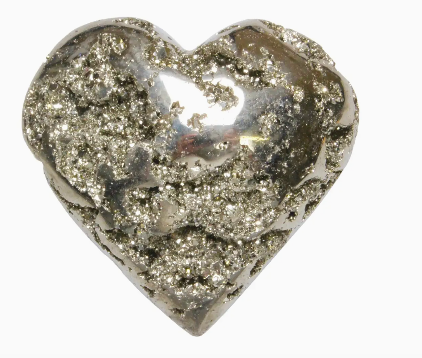 This Pyrite Heart is a stunning representation of the power and beauty of pyrite, also known as "Fool's Gold." The heart shape symbolizes love and compassion, while pyrite itself is renowned for its protective and energizing properties. This heart-shaped crystal is perfect for bringing a sense of strength, confidence, and vitality to any space or personal collection.