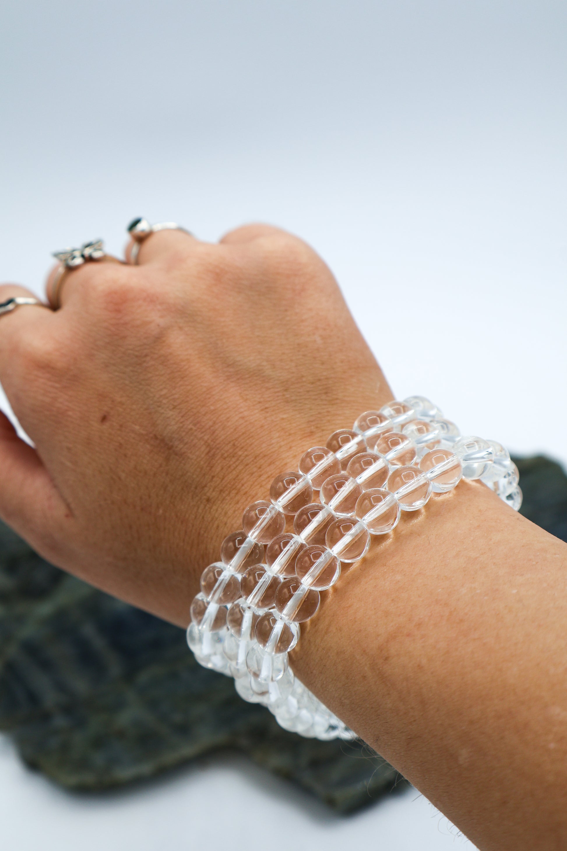 This clear quartz bracelet features 8mm beads, showcasing the stone's stunning transparency and brilliance. Known as the "master healer," clear quartz is revered for its versatility and ability to amplify energy, making it a must-have in any crystal collection. The bracelet is designed with a stretchable band for comfort and ease of wear, suitable for any occasion.