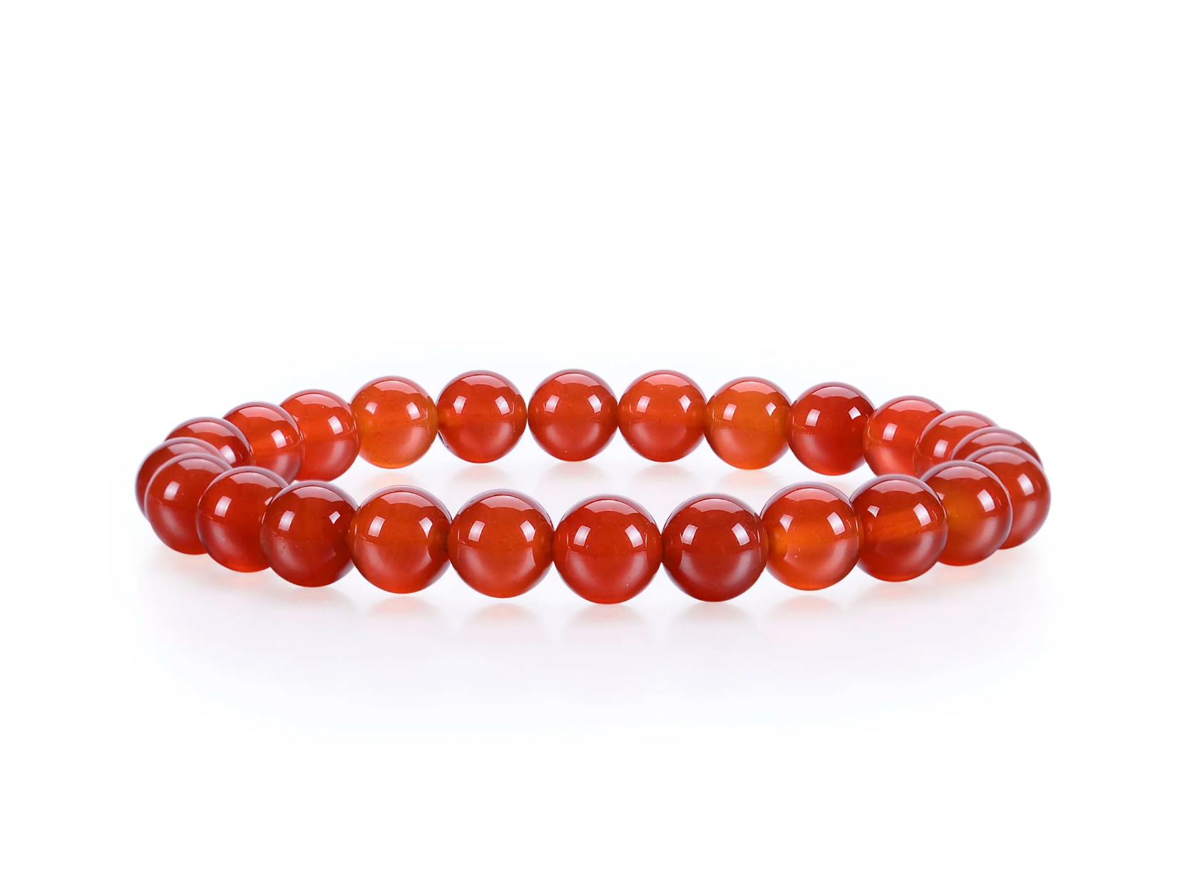This red agate bracelet features 8mm beads that exude warmth and strength, making it a striking addition to any jewelry collection. Known for its grounding properties, red agate is believed to enhance vitality and motivation, supporting you in achieving your goals. The bracelet's stretchable design ensures comfort and adaptability, perfect for daily wear or special occasions.