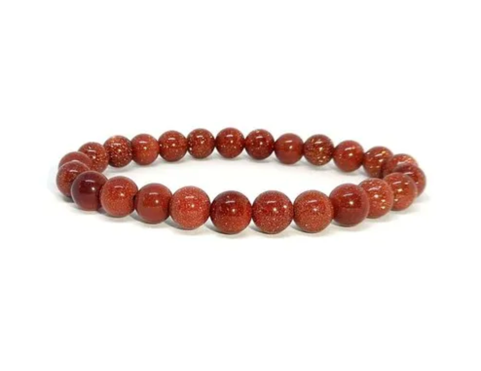 This red goldstone bracelet features 8mm beads that shimmer with a captivating sparkle, making it a standout piece in your jewelry collection. Known as the "stone of ambition," red goldstone is believed to boost energy and motivation, helping you pursue your goals with confidence. The stretchable design ensures a comfortable fit, making it perfect for everyday wear or special occasions.